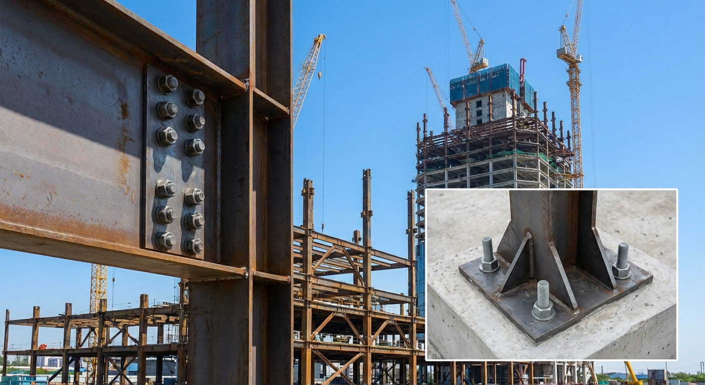 śruby konstrukcyjne wysokiej wytrzymałości, systemy łączeń stal–stal i stal–beton.