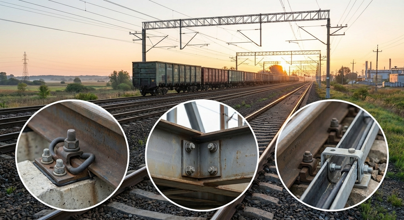 śruby do mocowania szyn, podkładów i elementów infrastruktury torowej. Produkcja według norm kolejowych, testy trwałości i odporności na drgania.