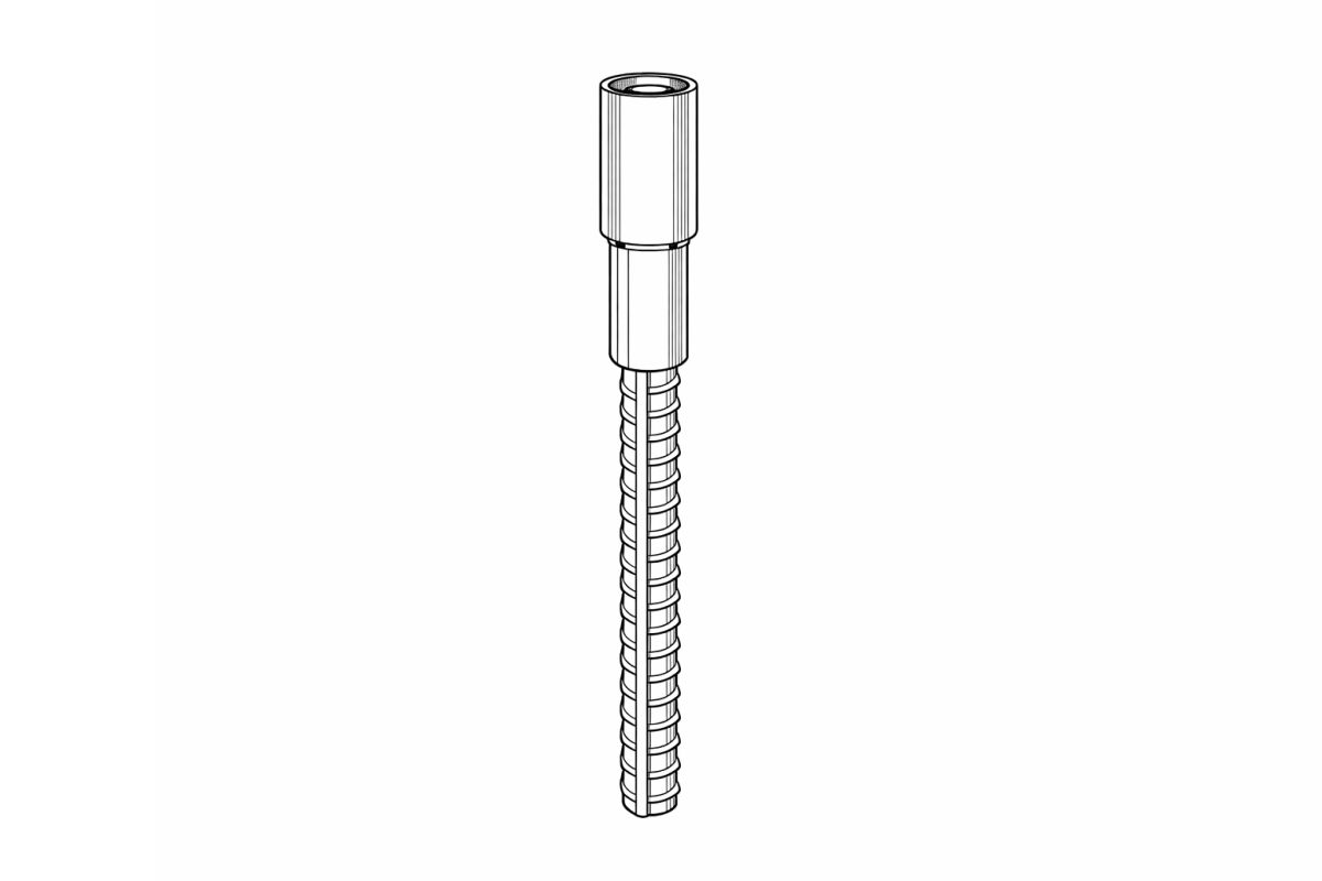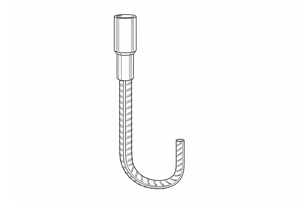 Normy: Jest wykonany przede wszystkim jako pręt mufowy, ale z faliście zagiętą nogą z pręta zbrojeniowego. Jest odpowiednia przede wszystkim dla wąskich prefabrykatów i do zabudowania cienkich ścian. W galwanicznie ocynkowanej, chromowanej bądź wykonanej ze stali szlachetnej tulejce wykonano gwint Rd, który powinno się przed montażem natrzeć olejem. Aby, do gwintu nie dostały się nieczystości lub beton, zalecamy użycie plastikowej zatyczki. Podczas używania stalowego szalunku, zaleca się używanie systemu magnetycznego.